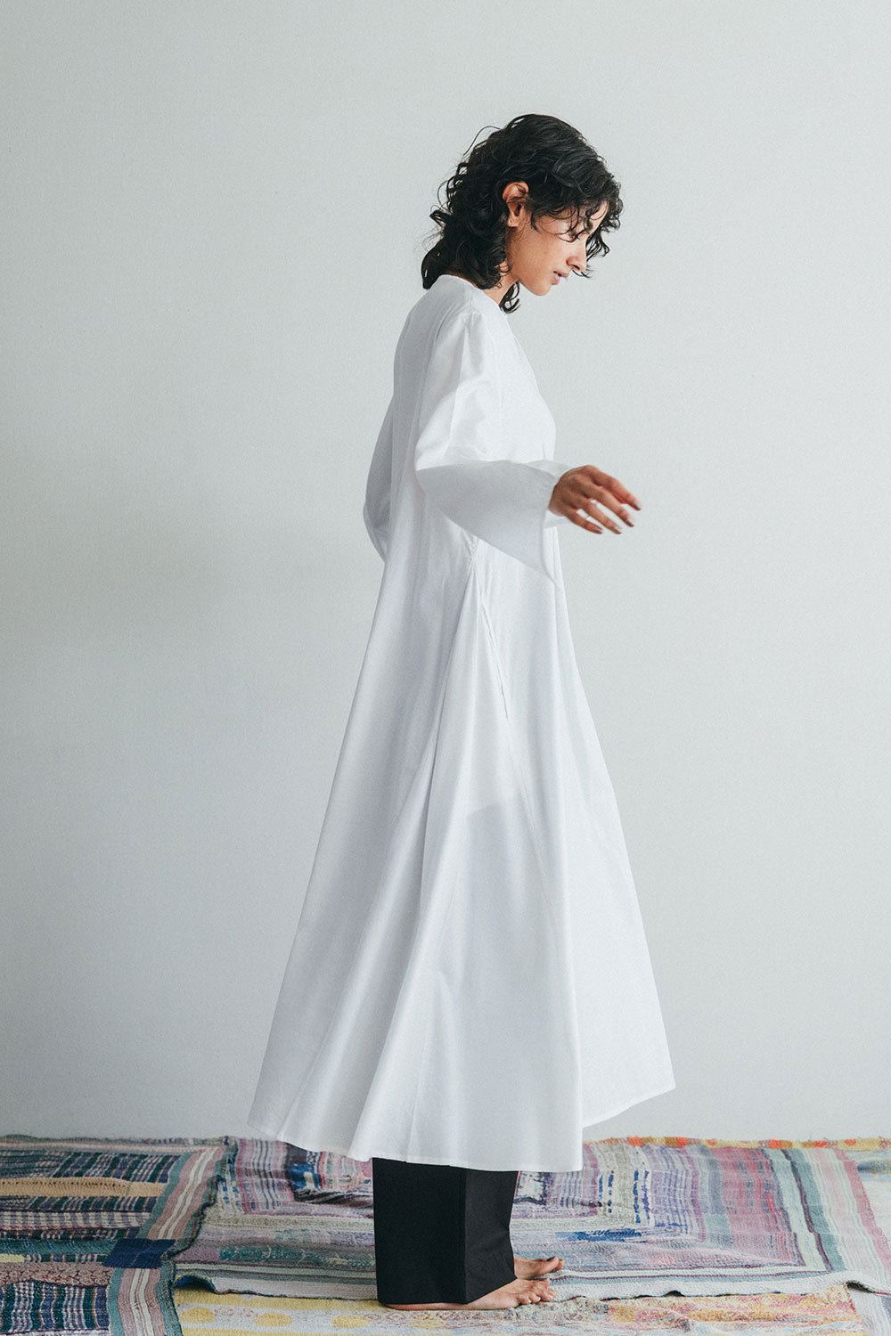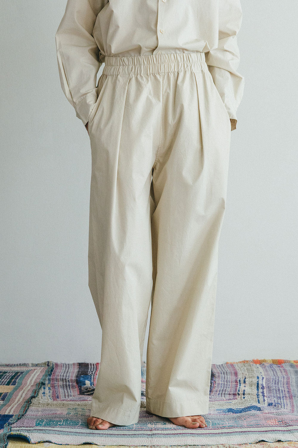 miiThaaiiというのはヒンディ語で『お菓子』という意味。fog linen workが本業だとしたらmiiThaaiiはちょっとした遊びのつもりと思って、始めたブランドなのです。行き当たりばったりで、インドの各地を旅するにつれ、さまざまな人や布、ものとの出会いもあり、扱う素材も増えてきました。生地そのものの販売をはじめ、衣類やバッグ、スカーフ、インテリアファブリックなど手仕事の温もりや力が感じられるアイテムを展開しています。