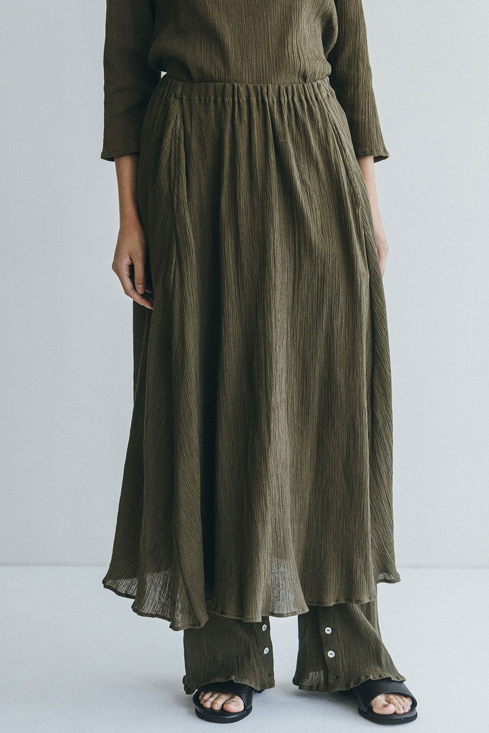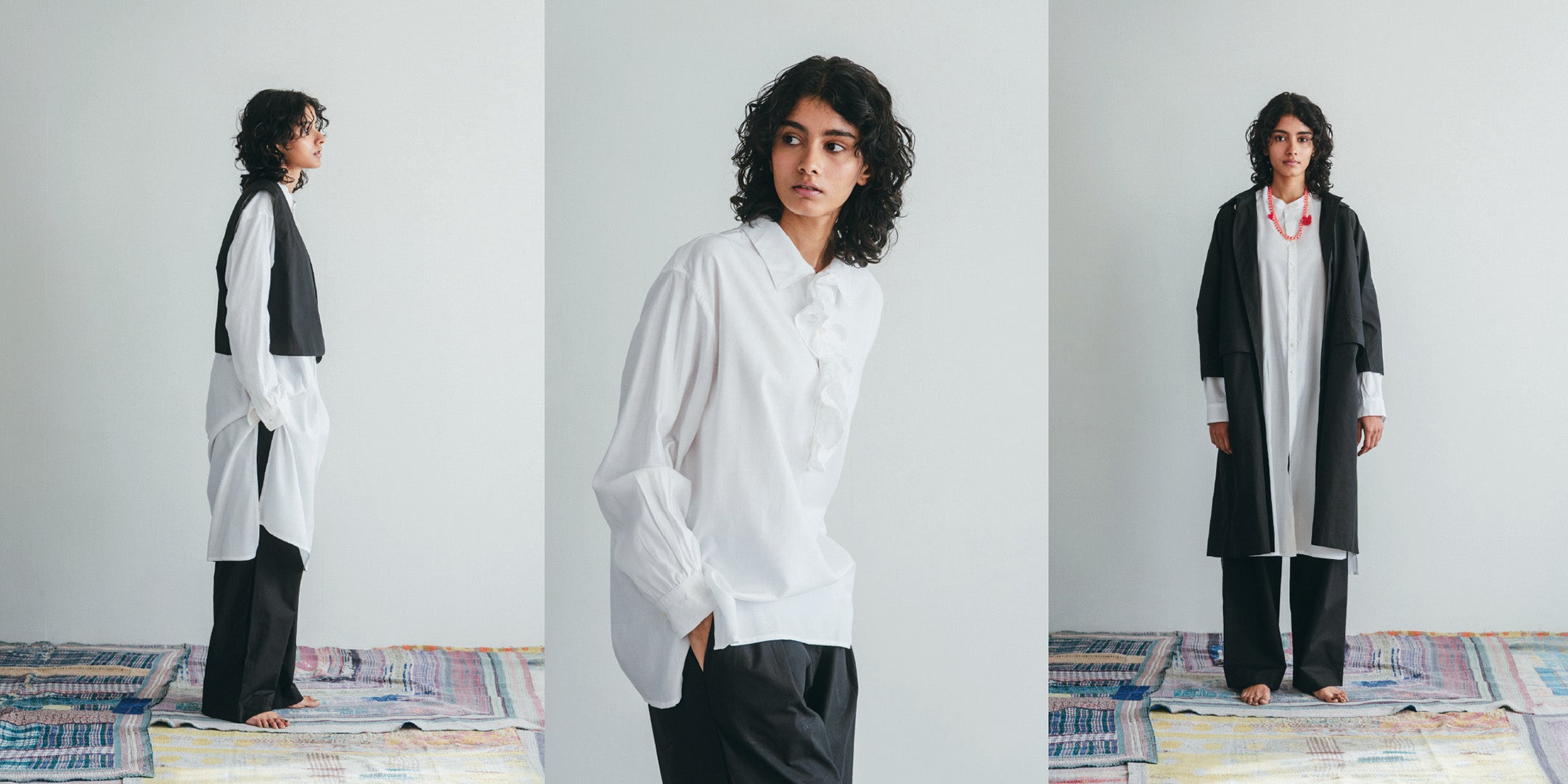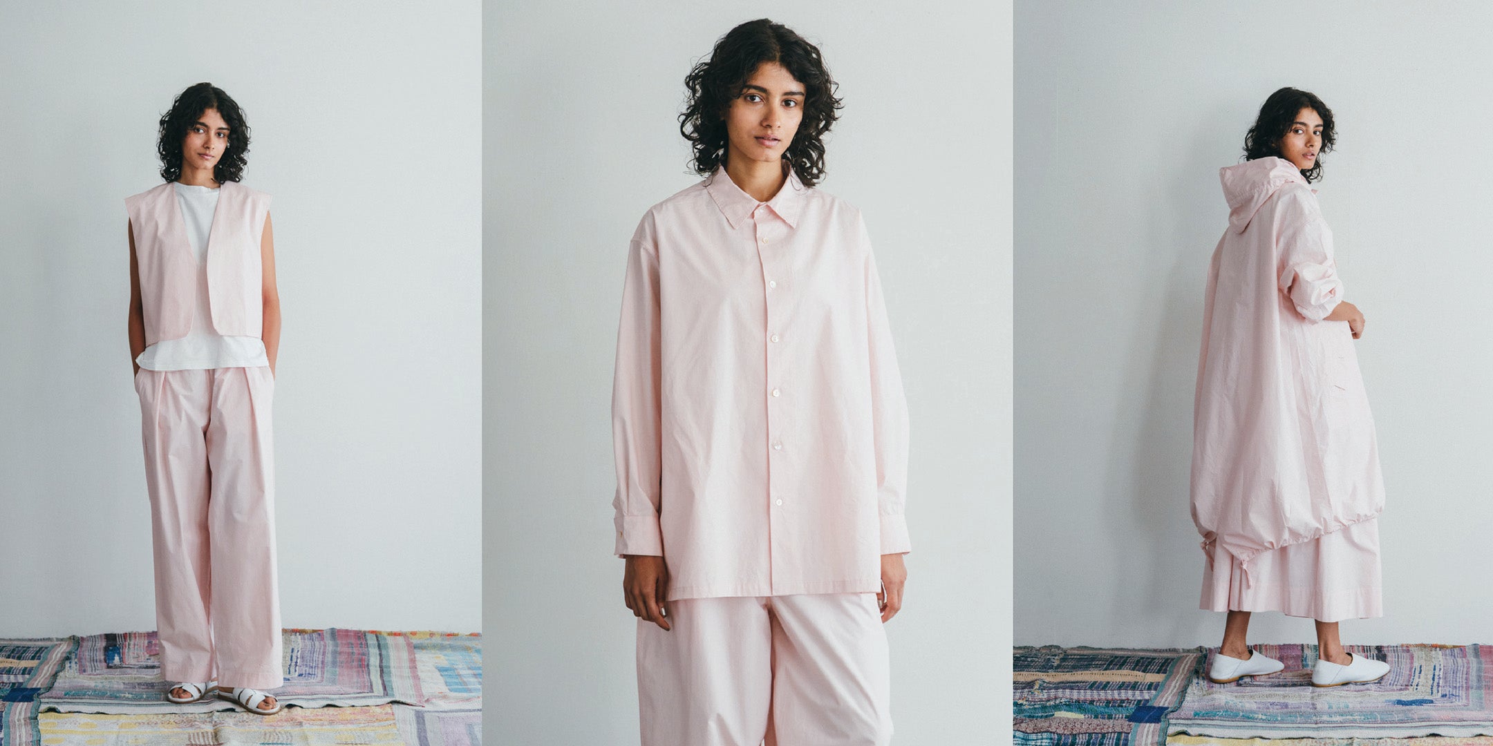 miiThaaiiというのはヒンディ語で『お菓子』という意味。fog linen workが本業だとしたらmiiThaaiiはちょっとした遊びのつもりと思って、始めたブランドなのです。行き当たりばったりで、インドの各地を旅するにつれ、さまざまな人や布、ものとの出会いもあり、扱う素材も増えてきました。生地そのものの販売をはじめ、衣類やバッグ、スカーフ、インテリアファブリックなど手仕事の温もりや力が感じられるアイテムを展開しています。